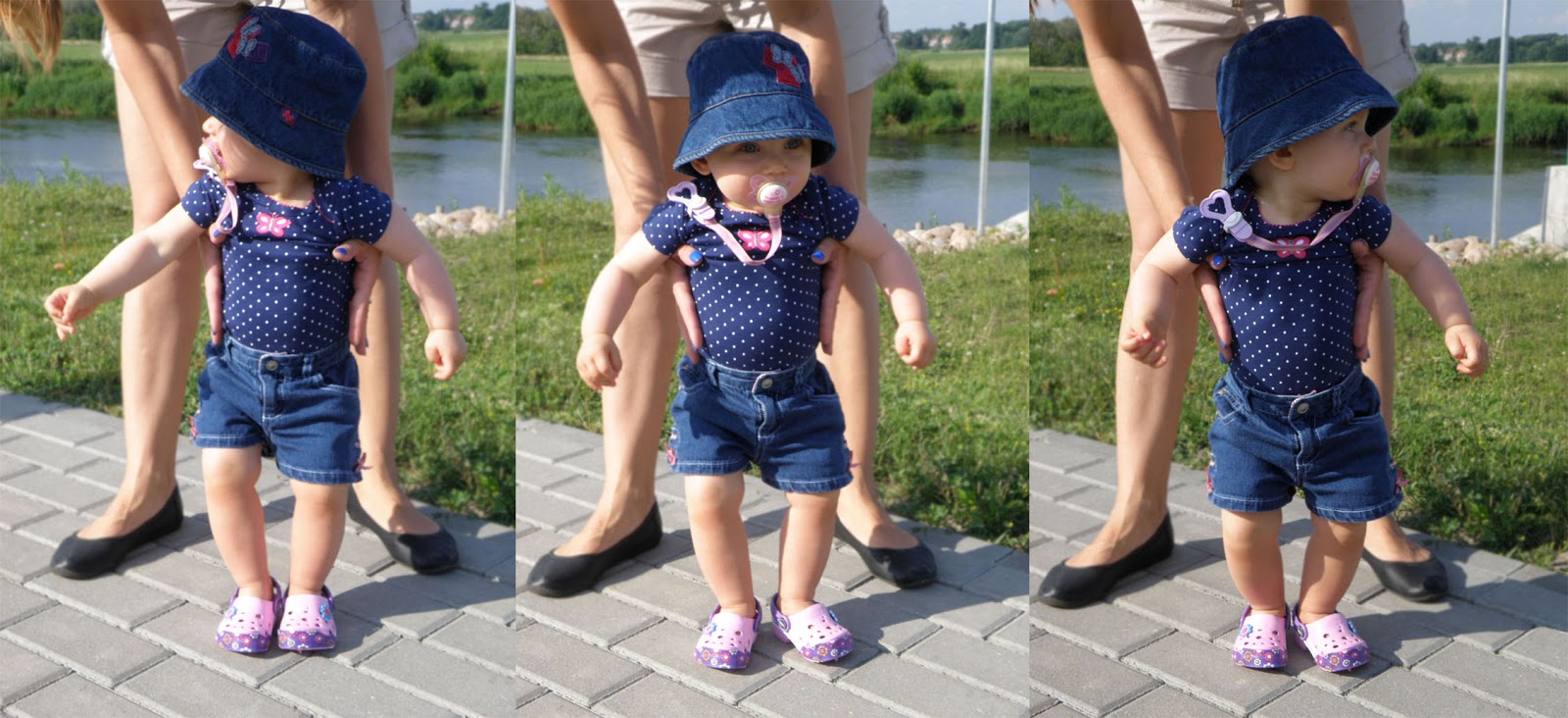 Ale nie o potrzebach naszego miasta, a o Dzidziulce chciałam… Otóż Dzidziulka z bujaczków korzystać nie chciała. Po prostu nie było bujanie do szczęścia potrzebne, a jej “zabawa” w bujaku kończyła się po pięciu minutach płaczem. Ale teraz, kiedy już siedzi pewnie, a do tego na powietrzu, na placu zabaw, gdzie dzieci pełno, bujać się uwielbia. I świetnie jej to wychodzi! Przechyla się do tyłu i nóżki prostuje, potem nóżki chowa, nachylając się lekko do przodu. Oczywiście trzyma się mocno łańcuchów. Zawodowiec normalnie, choć to dopiero jej trzeci raz! Za pierwszym już pokazała rodzicom, że wie o co chodzi, ale huśtawka nie do końca była bezpieczna, więc trzeba było asekurować 😉