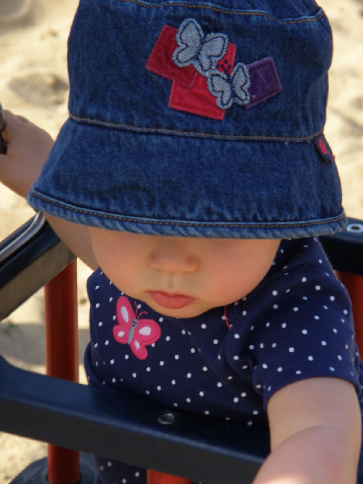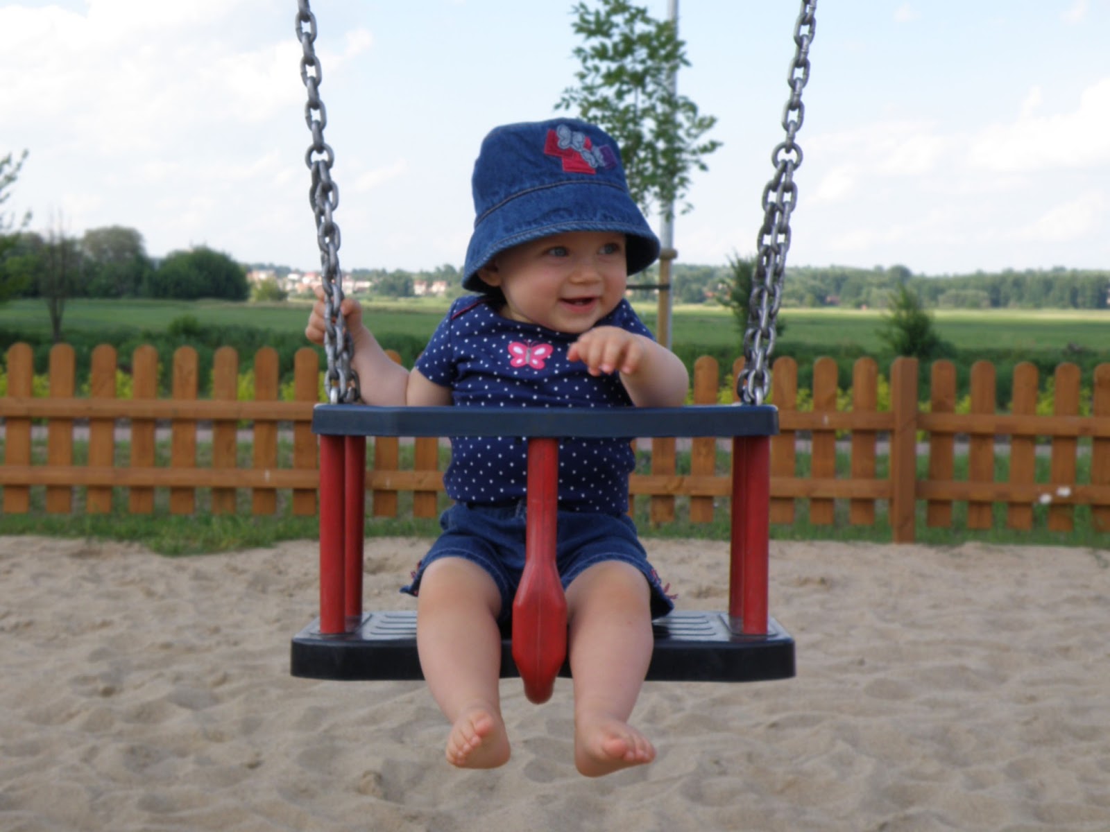 W naszym “wielkim” mieście na palcach jednej ręki policzyć zapewne bym mogła place zabaw z huśtawkami dla malusich dzieciaków. Takie huśtawki, gdzie i oparcie i zabezpieczenie z przodu, by Dzidziulka sama pobujać się mogła. W okolicy naszej placów co najmniej pięć, ale taki, z którego rzeczywiście skorzystać można, na drugim końcu miasta. Całe szczęście koniec nie tak daleko, bo tylko kilka minut samochodem, ale jakieś trzydzieści piechotą z wózkiem, a na dodatek pod górkę (i to nie małą) wracać by trzeba 😉