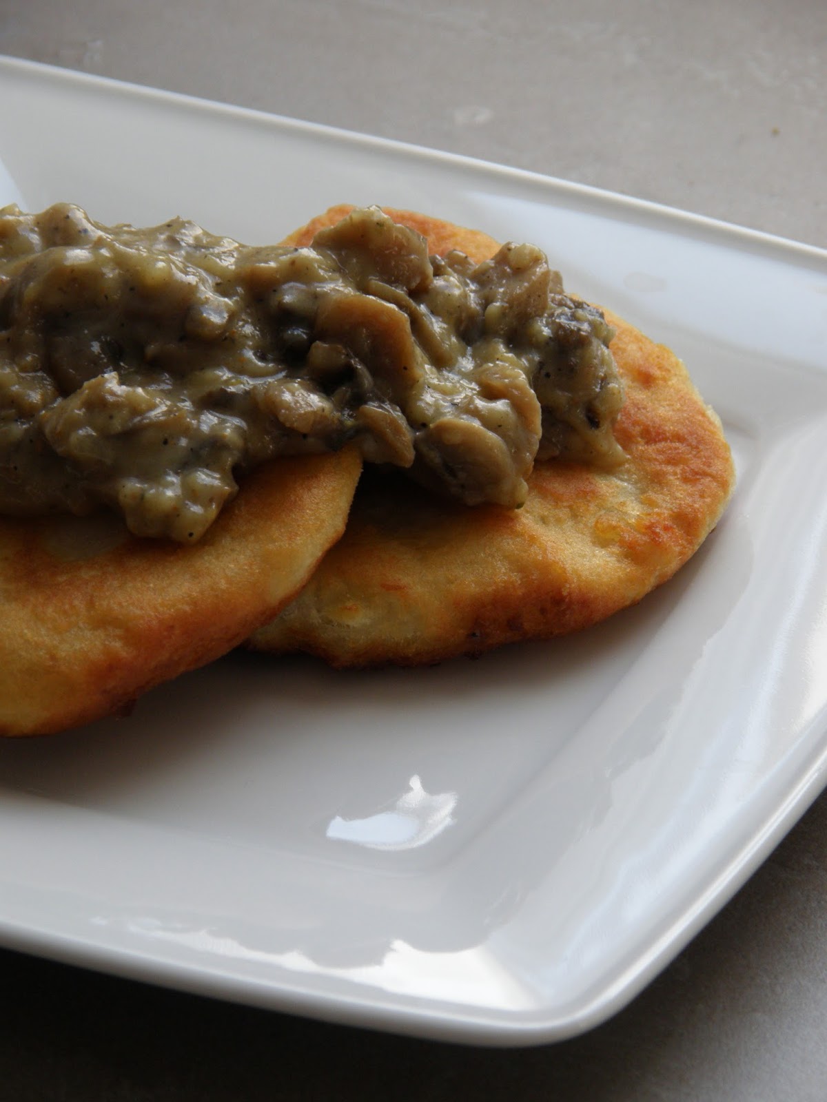 Uwielbiam je same, czasem na słodko ze śmietaną i dżemem, ale ze względu na męskie podniebienie w domu najczęściej zjadamy z sosem pieczarkowym.