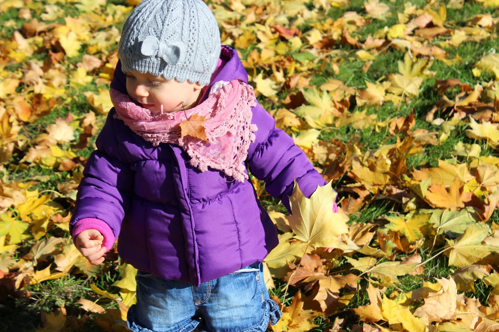 Gdy pokazaliśmy jej, że liście można kopać, a te “fruwają” śmiechu nie było końca.