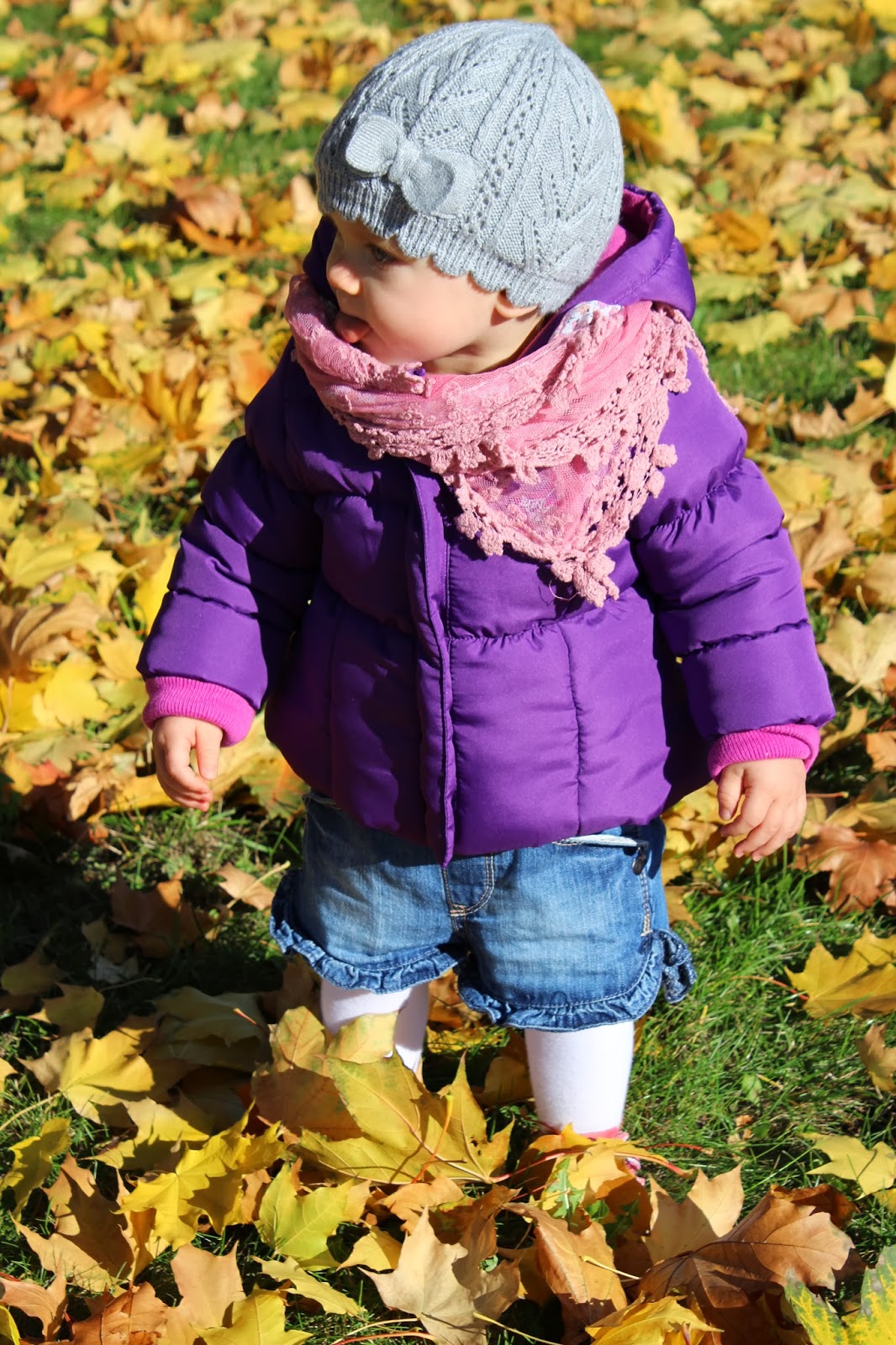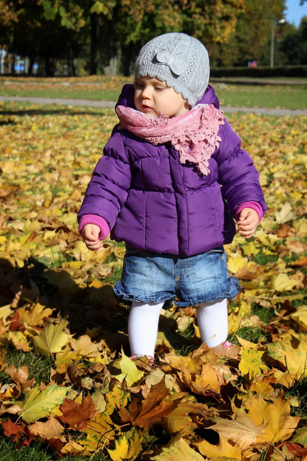 Bo choć temperatura spadła mocno i raptownie, nic więcej na jesień nie wskazywało. Marzyłam wręcz o spacerze w złotych liściach i zastanawiałam się jaka będzie reakcja Dzidziulki, bo w zeszłym roku, była jeszcze malusia i wszystkie spacerki jesienne przesypiała.