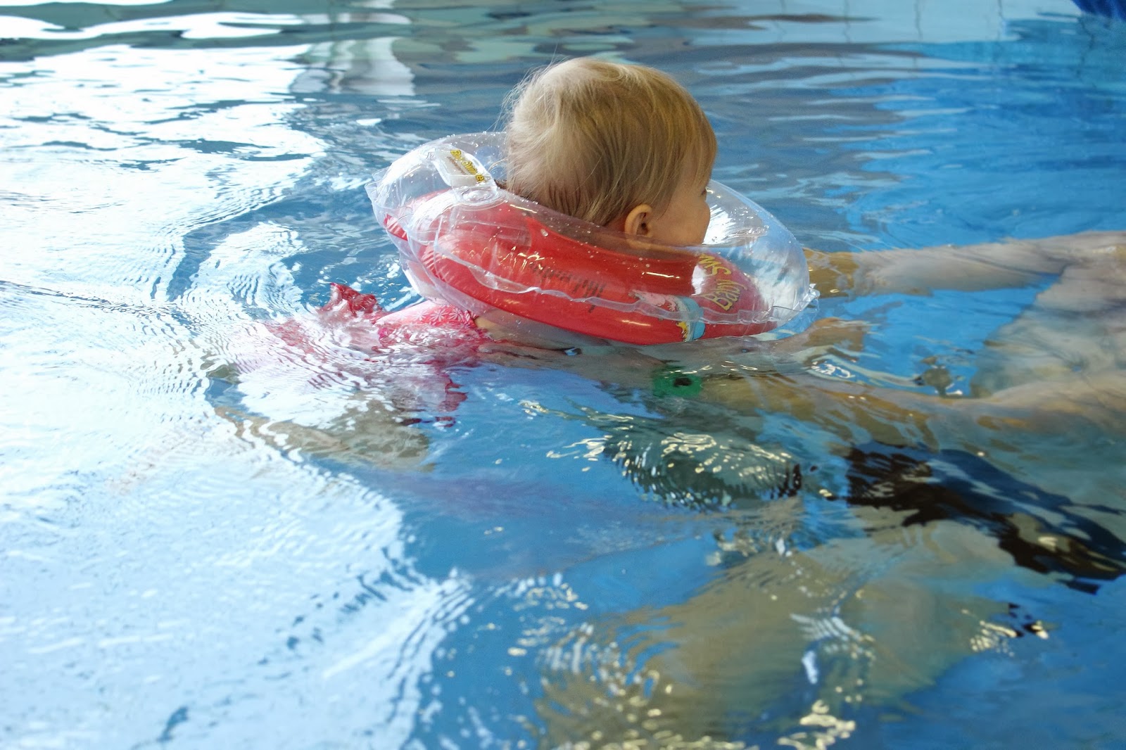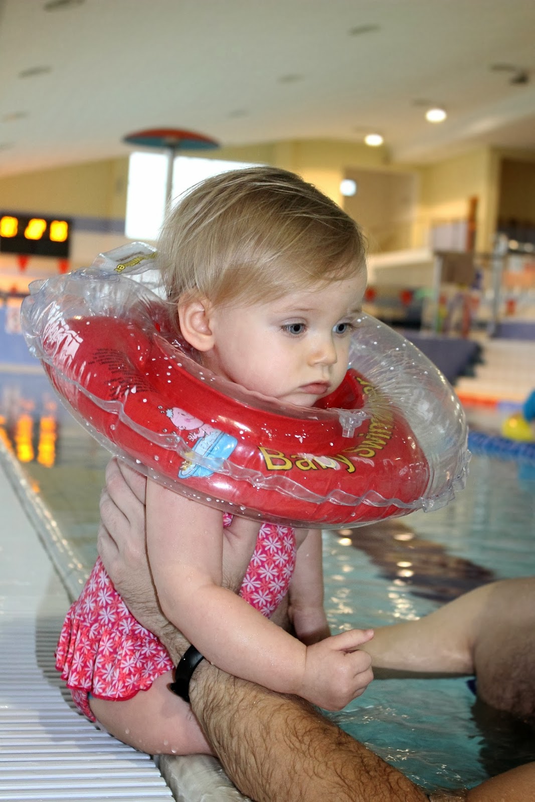 Z Tatą Dzidziulki zgodnie stwierdziliśmy, iż kołnierz Baby Swimmer jest świetnym gadżetem na basen! Dzidziulka bez kołnierza nie chciała położyć się na brzuchu. Zadzierała głowę wysoko i spinała mięśnie. Kołnierz Baby Swimmer sprawił, że Dzidziulka w wodzie czuła się bardzo swobodnie, komfortowo. Bez problemu położyła się, zaś trzymając Tatę za ręce machała nóżkami i PŁYWAŁA! Widok dla rodzica jest niesamowicie satysfakcjonujący! Jako że Dzidziulka nie ma doświadczenia dosyć szybko się zmęczyła :p Jednak nie przeszkadzało to w innych zabawach.