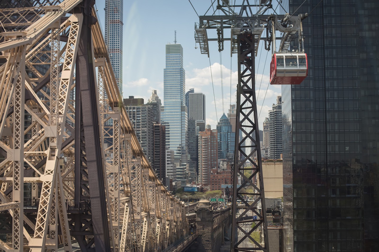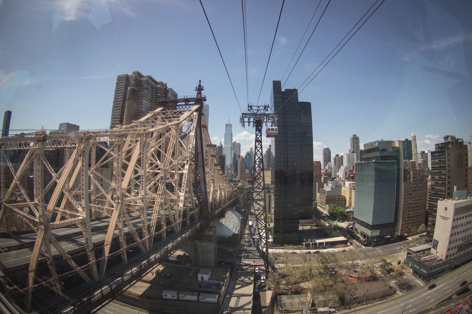 Na Roosevelt Island możemy dotrzeć subway’em (F), czyli tunelem pod rzeką albo wybrać drugą opcję i przez siedem minut napawać się ekscytującymi widokami Nowego Jorku. Na wyspę kursuje bowiem kolej linowa, do której wejście znajduje się przy na skrzyżowaniu 60 street i 2 Ave. Poruszająca się z prędkością dwudziestu kilometrów na godzinę jakieś siedemdziesiąt sześć metrów nad ziemią, wzdłuż mostu Queensboro jest fajną atrakcją. Cieszę się, że nie daliśmy się przestraszyć plotkom, usłyszanym od ‘niby’ miejscowych, którzy jednak nigdy nie byli w tym miejscu. Kolejka może budzić strach, wśród osób mających lęk wysokości, ale mnie – osobie, która już na siódmym piętrze nie wyjrzy przez balkon, nawet nie zakręciło się w głowie, a to znaczy, że straszne to nie jest. Widoki zza szklanej ściany kolejki są świetne. To rewelacyjna atrakcja, nie tylko dla dzieci. A wszystko za trzy dolary. Ponieważ kolejka jest środkiem komunikacji dla mieszkańców wyspy, koszt wynosi tyle co przejazd metrem. Dzieci do trzech lat i dzieci, których wzrost nie przekracza stu dwunastu centymetrów nie płacą za przejazd.